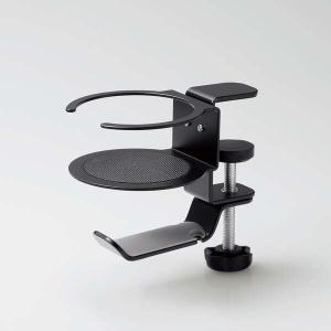 - あすつく エレコム ヘッドホンスタンド ホルダー クランプ式 ドリンクホルダー付 デスク下 収納 ブラック