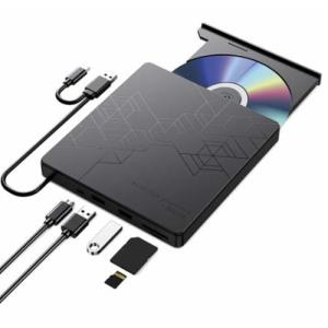 - 外付けDVDドライブ USB3.0 Type-C 両対応 黒 ポータブル 軽量 薄型スリム 静音設計 高速書込 高速読込 ドライバー不要 Windows/MacOS 対応 1ヶ月保証