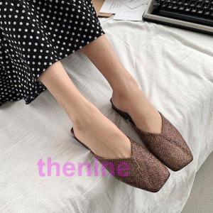 - スクエアトゥサンダル レディース サンダル ナチュラル素材 自然素材 スクエアトゥ らくちん スリッパ SS 韓国ファッション ベージュコーデ