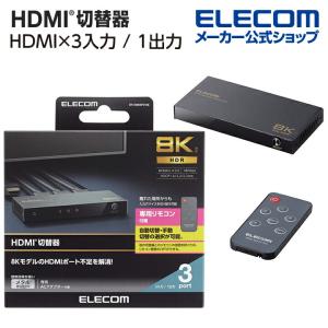 - エレコム HDMI切替器 3入力1出力 8K対応 3ポート HDMIセレクター HDMI分配器 切り替え器 ブラック┃DH-SW8KP31BK