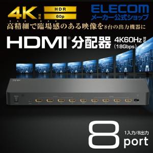 - エレコム HDMI分配器 1入力 8出力 hdmi 分配器 1入力8出力 同時出力 4K60p対応 専用ACアダプター┃VSP-HDP18BK