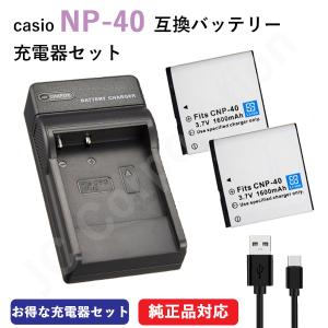 - バッテリー 2個 + USB 充電器セット カシオ(CASIO) NP-40 互換