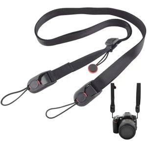 - カメラストラップ カメラホルダー 長さ調節 軽量 約50g ナイロン製 バックル3種付き (ブラック, 84 cm - 150 cm)