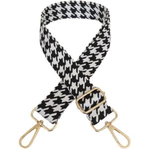 - ショルダーストラップ 千鳥格子柄 幅広 太め バッグ カメラ スマホ用 おしゃれ 可愛い レディース 調節可能(ブラック)