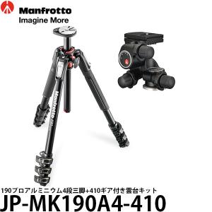 - 《2年延長保証付》 マンフロット JP-MK190A4-410 190プロアルミニウム4段三脚+410ギア付き雲台キット 【送料無料】