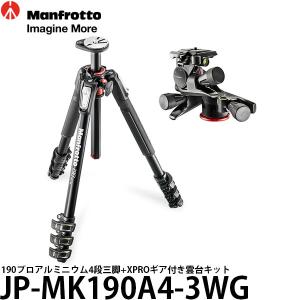 - 《2年延長保証付》 マンフロット JP-MK190A4-3WG 190プロアルミニウム4段三脚+XPROギア付き雲台キット 【送料無料】