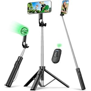 - 自撮り棒 magsafe全方位360°回転・超強磁力スマホスタンド 三脚 磁気リング付き じどり棒 携帯スタンド (ブラック)