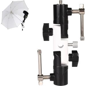 - アンブレラホルダー カメラ レフ板 フラッシュブラケット スタンド取付 ライトスタンド スタジオ撮影 変換ネジ ダブル関節 (ブラック)