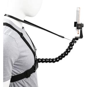 - スマホ アクションカメラ マウント フレキシブルアーム チェスト ハーネス ホルダー 手ぶら動画撮影 自由に角度調整 落下防止ストラップ