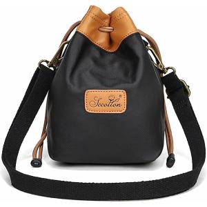 - カメラバッグ 巾着 ショルダー カメラポーチ カメラ収納 カメラケース ミラーレス 一眼レフ(ブラック, M)