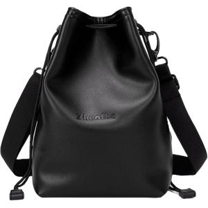 - カメラバッグ ショルダー 取り外し可能 巾着 おしゃれ PUレザー 撥水加工 小型 軽量 一眼レフ デジカメ レンズ(ブラック, M)
