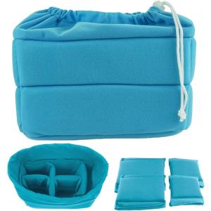- カメラ インナーバッグ 一眼レフ ケース クッション付き 防振 ソフト 収納バッグ バッグインバッグ 旅行 おしゃれ (スカイブルー)