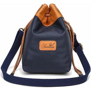 - カメラバッグ 巾着 ショルダー カメラポーチ カメラケース 防水 一眼レフ ミラーレス 仕切り付き (ネイビー, M)