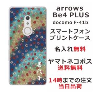 - arrows Be4 PLUS ケース F-41B アローズBe4プラス カバー らふら 名入れ 和柄 和小花ブルーグラデ