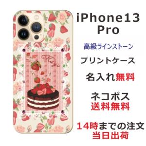 - iPhone13 Pro アイフォン13プロ らふら 名入れ スマホケース ラインストーン ストロベリーケーキ