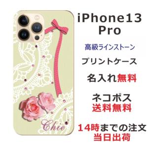 - iPhone13 Pro アイフォン13プロ らふら 名入れ スマホケース ラインストーン ローズレース