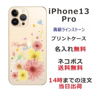 - iPhone13 Pro アイフォン13プロ らふら 名入れ スマホケース ラインストーン スマホカバー 押し花風 フラワーアレンジカラフル