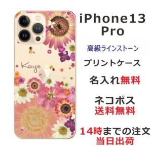 - iPhone13 Pro アイフォン13プロ らふら 名入れ スマホケース ラインストーン スマホカバー 押し花風 フラワーアレンジピンク