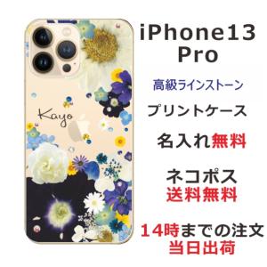 - iPhone13 Pro アイフォン13プロ らふら 名入れ スマホケース ラインストーン スマホカバー 押し花風 フラワーアレンジブルー