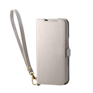 - エレコム PM-A25CPLFY4GB iPhone 17 Pro ケース レザー 手帳型 マグネット 衝撃吸収 ハンドストラップ付 スタンド機能付 グレージュ