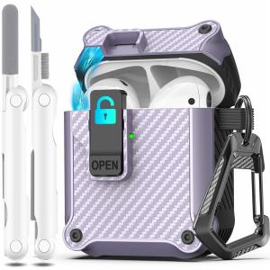 - R-fun Airpods ケースカバー 自動安全ロッククリップ付き、Apple Airpods 第 2 世代および第 1 世代用の