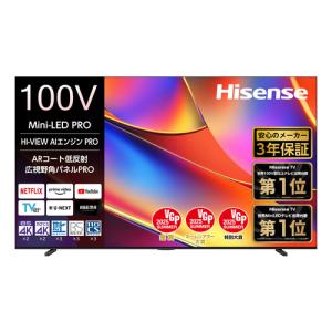 - 【無料長期保証】ハイセンス 100YR8U 100V型 MiniLED 4K液晶テレビ HI-VIEW AIエンジンPRO搭載 BS・110 度CS デジタルチューナー内蔵