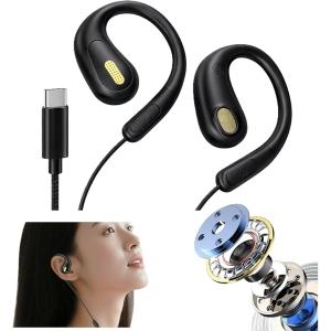 - 高音改良型 オープンイヤー イヤホン 有線 マイク付き パソコン用 会議用 耳掛け 耳を塞がない 耳が痛くならない (タイプC ブラック)