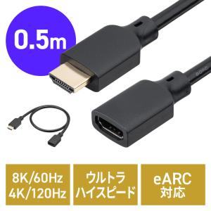 - HDMIケーブル 延長 ケーブル 50cm 抜け止め ラッチ 搭載 抜けにくい 4K/30Hz 高解像度 HEC ARC 対応 500-HDMI014-05