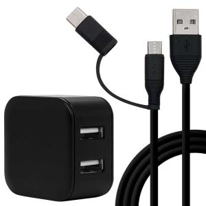 - ラスタバナナ AC充電器 USB A*2ポート 2.4A(A to microBケーブル1.5m+TypeC変換)BK [2ポート /Smart IC対応] RAC2A2A04BK
