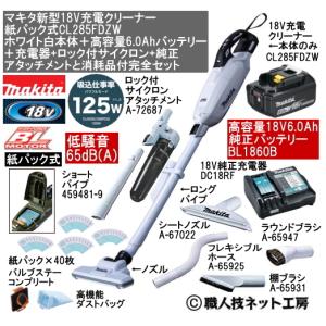 - マキタ 充電式クリーナ CL285FDZW(白)+バッテリBL1860B+充電器DC18RF付 18V対応 makita オリジナルセット品 在庫