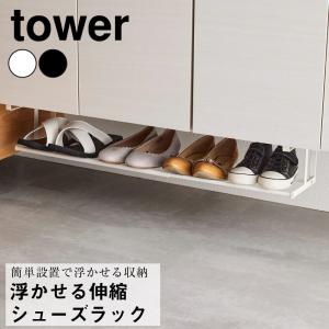 - 浮かせる伸縮シューズラック タワー 山崎実業 おしゃれ シンプル 高見え 便利 エントランス 靴箱 小物入れ 掃除 風通し 2段 用具