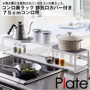 - コンロ奥ラック プレート 排気口カバー付き 75cmコンロ用 ホワイト 山崎実業 おしゃれ シンプル 高見え 便利 キッチン 油はね 防止 アタッチメント 拡張