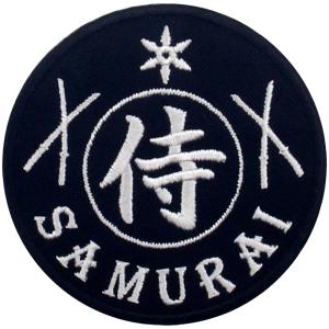 - 武士刺繍入りアイロン貼り付け/縫い付けワッペン, 白黒