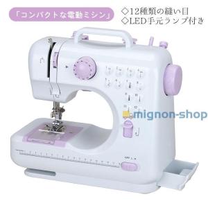 - 電動ミシン コンパクト 小型ミシン 家庭用ミシン 初心者 12種類の縫い目 フットコントローラー LED手元ランプ付き ACアダプタと単三電池