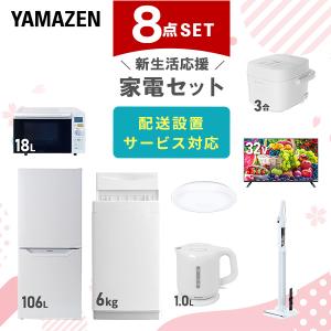 - 新生活家電セット 8点セット 一人暮らし (6kg洗濯機 106L冷蔵庫 電子レンジ 炊飯器 32型液晶テレビ 電気ケトル スティッククリーナー 家電収納ラック) 山善