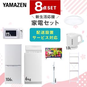 - 新生活家電セット 8点セット 一人暮らし (6kg洗濯機 106L冷蔵庫 電子レンジ シーリングライト 32型液晶テレビ 電気ケトル スティッククリーナー 山善