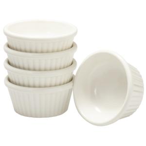 - 萬古焼 オーブン対応 スフレ ココット (大) 皿 ホワイト立筋 直径約10cm 電子レンジ可 06581