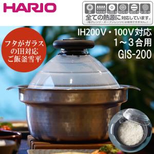 - ハリオ GIS 200 IHご飯釜 ガラス蓋で中が見える 1 3合炊き 煮込みOK フッ素コート GIS200