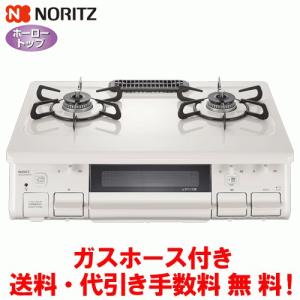 - ノーリツ ガスコンロ NLG2295WH 59cm/無水片面焼き/ガスホース付き