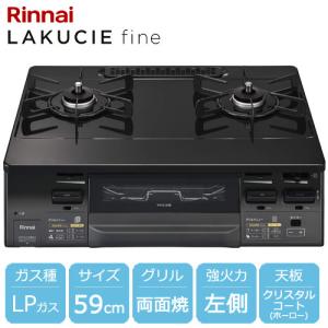 - ☆選べるグルメギフト 550円分プレゼント☆ガスコンロ リンナイ ラクシエファイン グリル付ガステーブル プロパンガス用 左強火力 約59cm ブラック