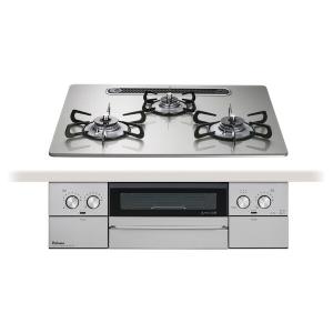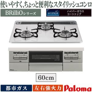 - ビルトインコンロ パロマ ブリリオ 都市ガス 3口ガスコンロ 60cm幅 水なし両面焼グリル 温度キープ機能 ティアラシルバー PD-743WS-60CV-13A