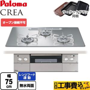 - 工事費込みセット CREA(クレア) ビルトインコンロ 幅75cm パロマ PD-963WT-U75GG-13A オーブン接続不可 グロスミラー 【都市ガス】