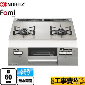 - 工事費込みセット Fami ファミ スタンダードタイプ ビルトインコンロ 幅60cm ノーリツ N3WV6RWTP1-LPG ブラックガラストップ 【プロパンガス】