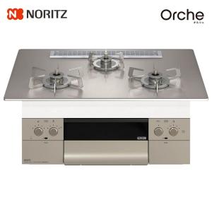- ノーリツ ビルトインコンロ N3WU2PWASKSTESC Orche オルシェ 75cm幅 ガラストップ:シルバーミラー 3口ガスコンロ *ロティプレート同梱 *オーブン接続不可