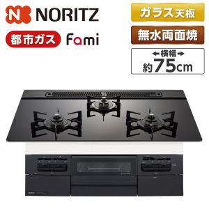 - NORITZ N3WV7RWTP1-13A Fami (ファミ) ビルトインガスコンロ (都市ガス用・3口・両側強火タイプ・幅75cm)