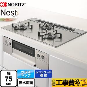 - 工事費込みセット Nest ネスト ビルトインコンロ 幅75cm ノーリツ N3WU6PWAP2STE-LPG ムーンシルバー 【プロパンガス】