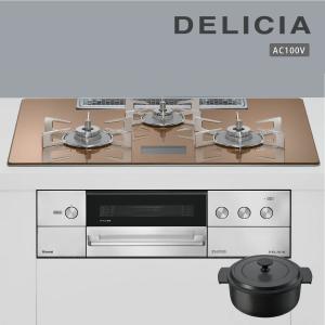 - リンナイ デリシア DELICIA RHS71W31E12VCASTW 100V電源 スパークリングカッパー ビルトインガスコンロ 幅75cm プロパンガス 都市ガス ガラストップ 3口