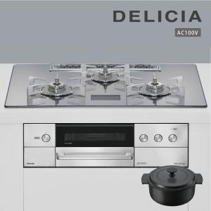 - リンナイ ビルトインコンロ RHS72W38M12VNSTW DELICIA デリシア 75cm幅 AC100Vタイプ 3口ガスコンロ 都市ガス プロパン