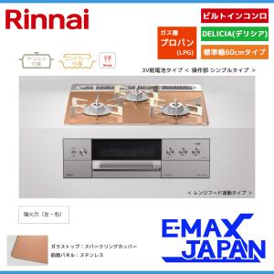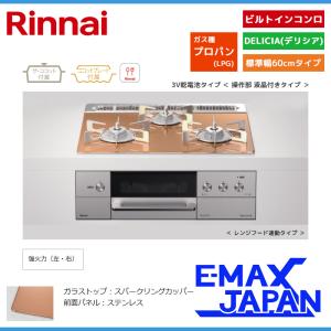 - リンナイ ビルトインコンロ DELICIA デリシア 3口 3V乾電池タイプ 都市ガス 13A 60cm スパークリングカッパー RHS31W31E12RCASTW-13A
