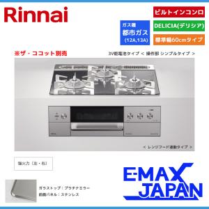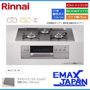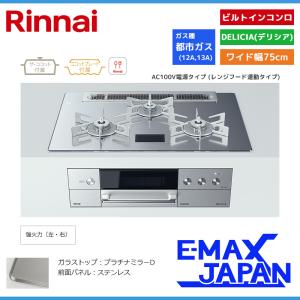 - リンナイ ビルトインコンロ DELICIA デリシア 3口 3V乾電池タイプ 都市ガス 13A 75cm プラチナミラーD RHS71W31E13RCASTW-13A